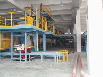 通過(guò)膠片冷卻聯(lián)動(dòng)線的浸漬、掛膠風(fēng)冷、擺放疊片給下道工序。